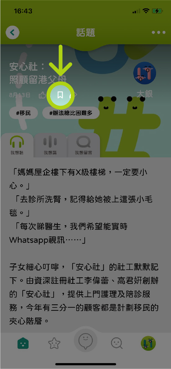 A:在話題主頁及內文,可按以下「收藏」鍵,將心水內容儲存後隨時翻閱。