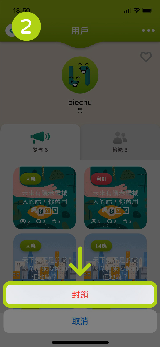 A:被關注後,其他用戶僅會看見您公開發佈的訊息,並不會查閱到您的個人資料。用戶間互相關注,冀能方便交流,亦能第一時間收到您想關注的資訊。若用戶感到困擾,可選擇按入已關注您的用戶頭像,進行封鎖。