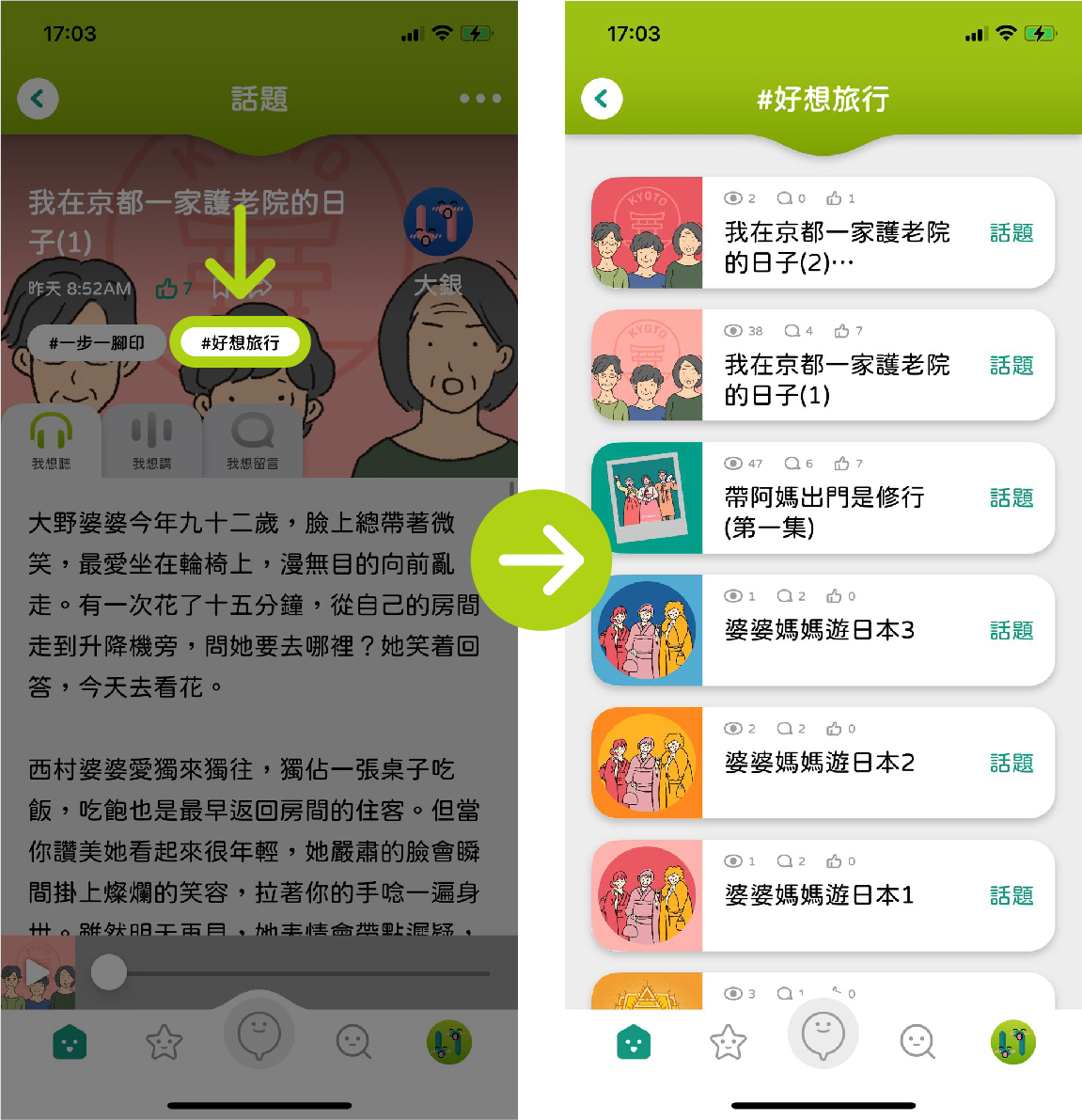 A:您可以在「搜尋」功能中,輸入您想知道的關鍵字,搜尋出相關話題。您亦可按入文章內的「標籤 #」,查看相關話題。